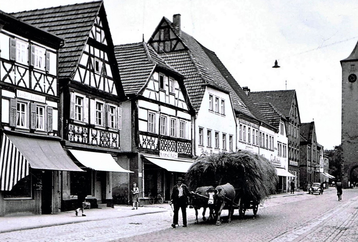 Randstein- und Markisensteuer Die sogenannte Randsteinsteuer und die Markisensteuer bewegten in den 50-er Jahren die Gemüter in Haßfurt. Aufgrund eines alten Magistratsbeschlusses aus dem Jahre 1911 stellte man beim Ausbau der Hauptstraße den Hausbesitzern die Randsteine der Gehsteige in Rechnung. Die Kreisstädter standen mit dieser Steuer ziemlich alleine auf weiter Flur. Die Stadt Zeil bezahlte beim Ausbau der Bamberger-Straß sämtliche Arbeiten an den Gehsteigen.