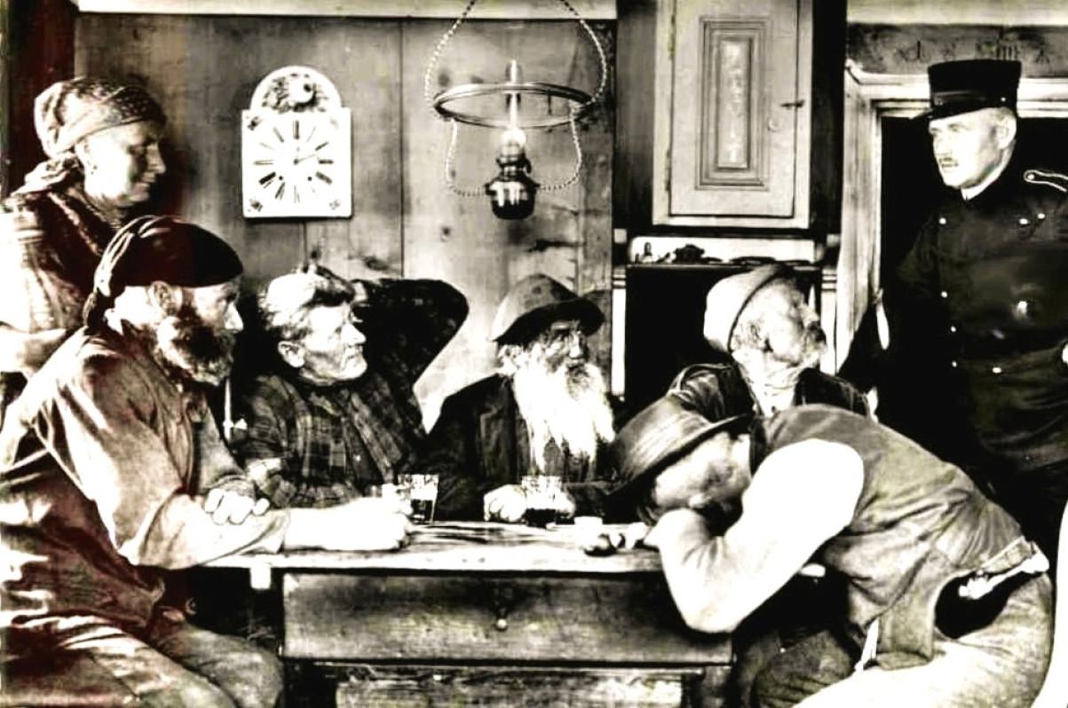 06 Polizeistunde Mahnend zeigt der Wirt auf die Uhr. Bei Überschreitung der Sperrstunde war die „Hockersteuer“ fällig Bild: Unbekannt