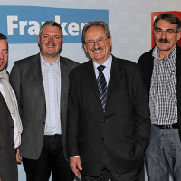 Am Frankentag der SPD nahmen auch Vertreter aus dem Landkreis Haßberge statt: Unser Bild zeigt (von links) den Kreisvorsitzenden der Haßberg-SPD Wolfgang Brühl, den Fraktionsvorsitzenden im Kreistag Jürgen Hennemann sowie Kreisrat Paul Hümmer mit dem Münchener Oberbürgermeister Christian Ude (Zweiter von rechts).