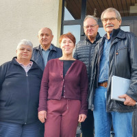 Versichertenberater Hans Schmitt (2. von rechts) im Kreis der AWO-Initiatoren von links nach rechts: Elisabeth Endreß, Toni Michels, Martina Binzenhöfer und Paul Hümmer, vor der AWO Geschäftsstelle Ebern.